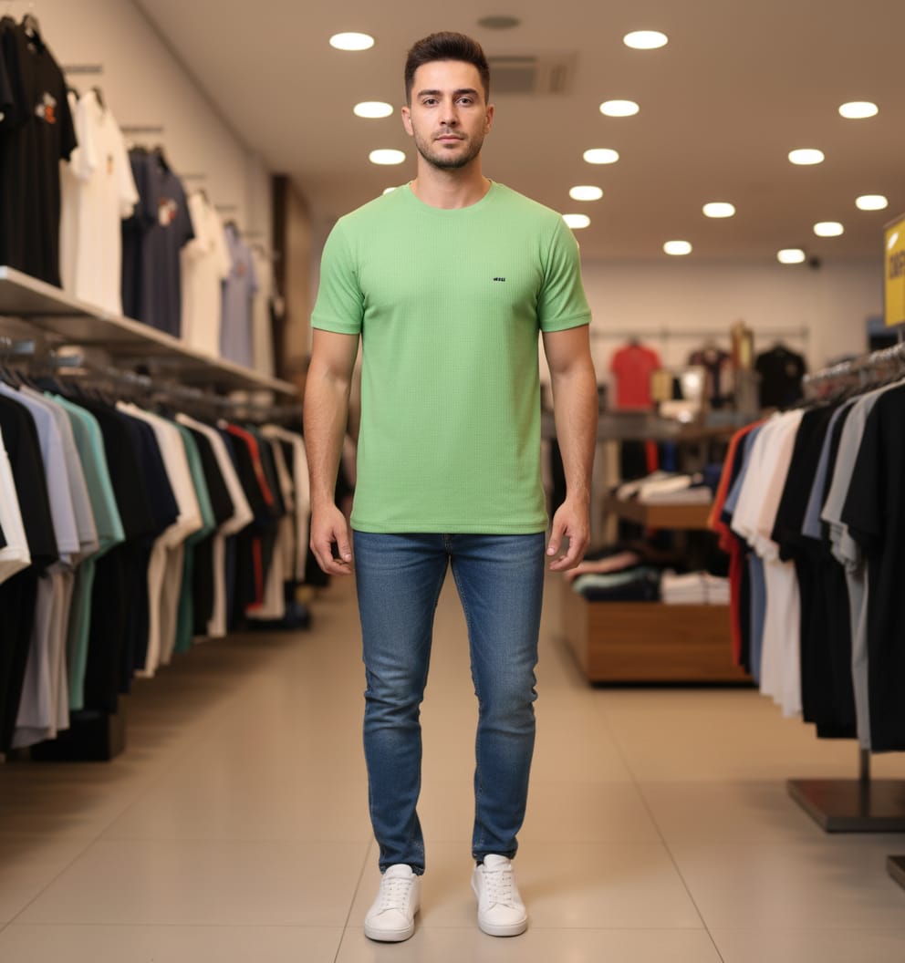 Camisetas de tricô texturizadas masculinas se caracterizam pelo tecido com relevos, que adiciona sofisticação e diferenciação ao visual, sendo versáteis para looks casuais ou mais arrumados, com toque macio, conforto e opções de modelagem que valorizam o corpo ou oferecem caimento mais solto, usando fios de algodão, poliviscose ou misturas, com detalhes em golas e punhos para um acabamento premium.
